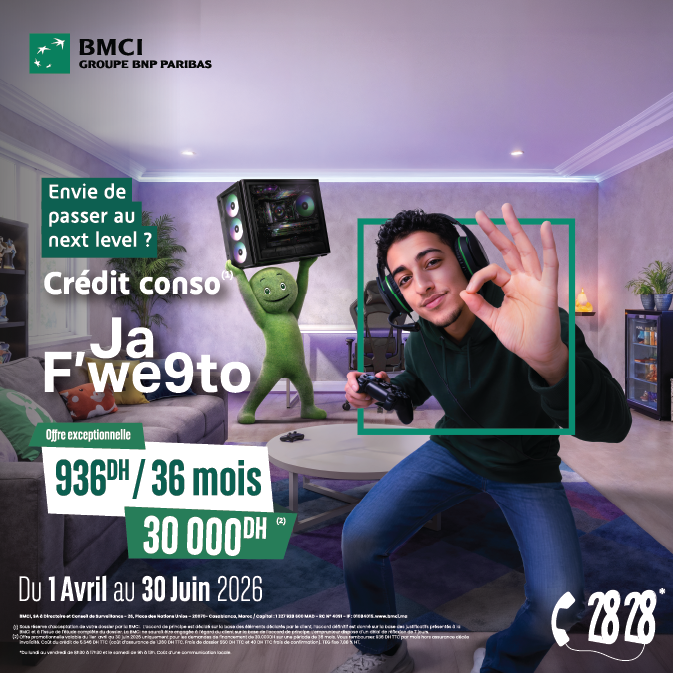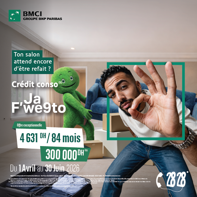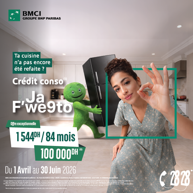 Du 1ier avril au 30 juin 2026, profitez de solutions flexibles avec des montants de crédits de 5.000 jusqu’à 315.000 DH, sur une durée allant jusqu’à 84 mois.